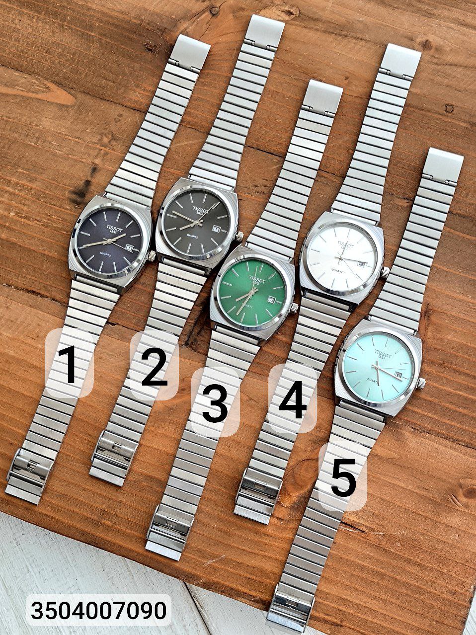 ست مردانه ساعت تیسوت تقویم فعال و دستبند و گردنبند زنجیر استیل و حلقه استیل( سایز ۶ تا ۱۰)