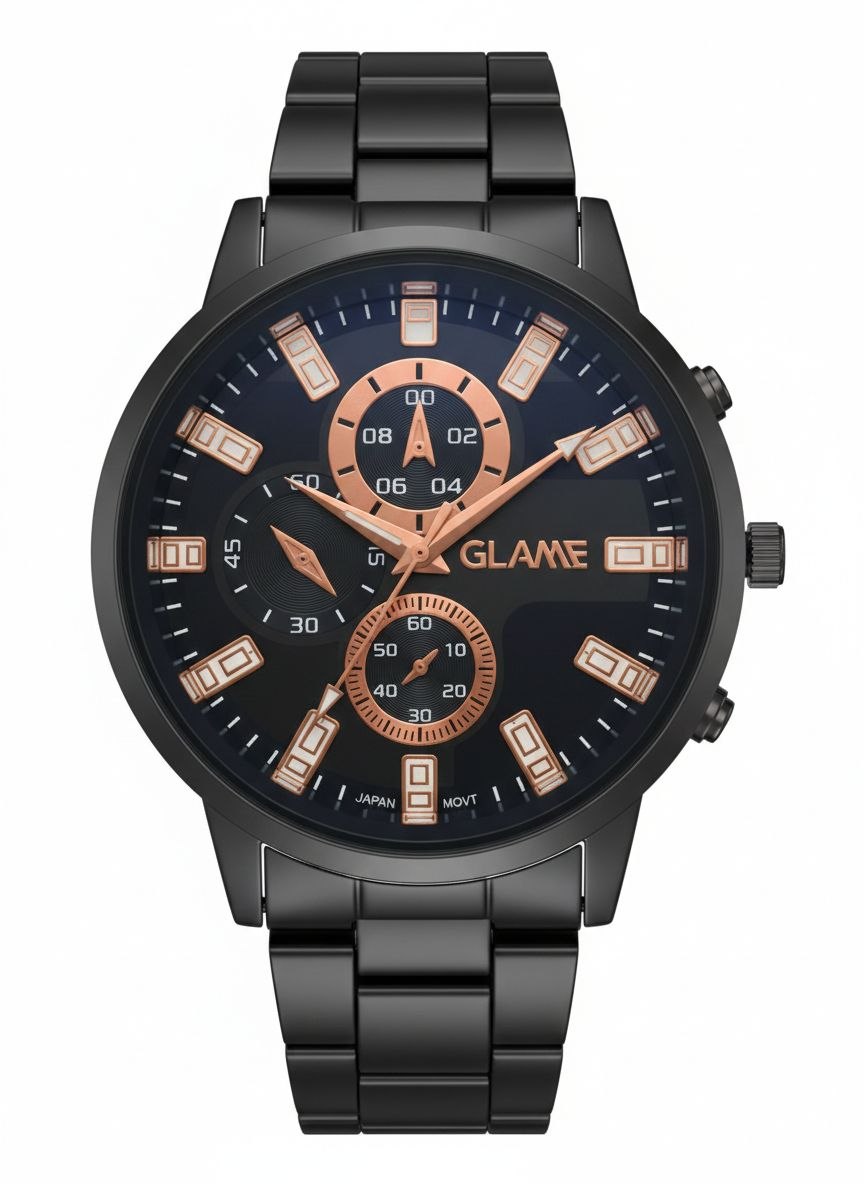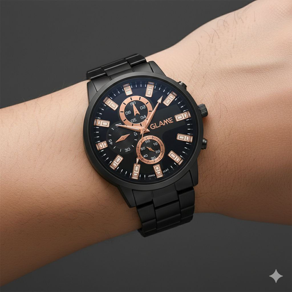 قفل کلیپیسی باکیفیت طراحی خاص و زیبا بند فلزی صفحه مشکی موتور کوارتز طرح سه موتوره