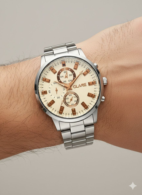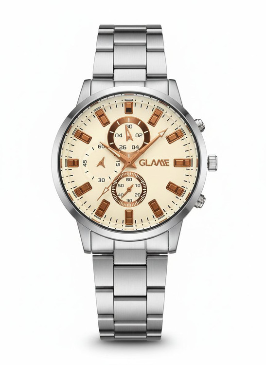 قفل کلیپیسی باکیفیت طراحی خاص و زیبا بند فلزی صفحه کرمی موتور کوارتز طرح سه موتوره