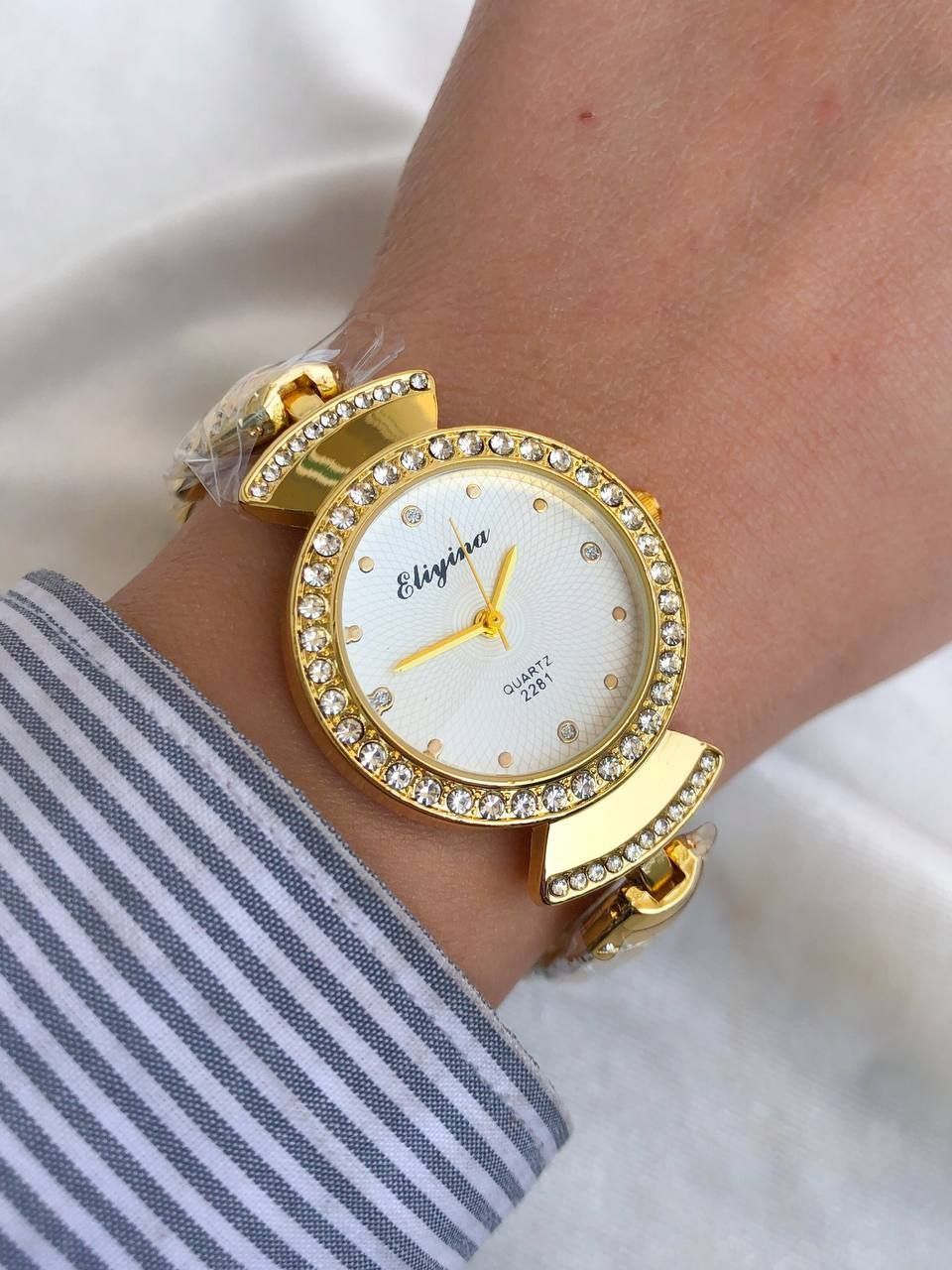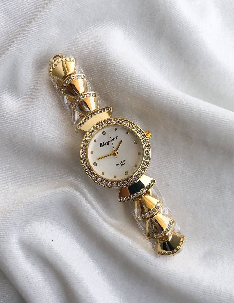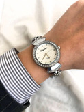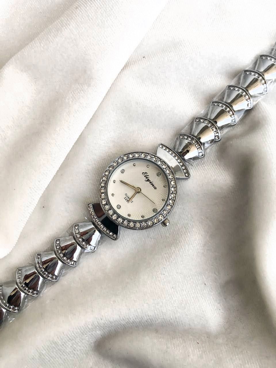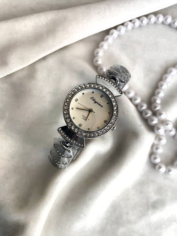 ساعت زنانه یا دخترانه صفحه گرد دور قاب نگین 24255