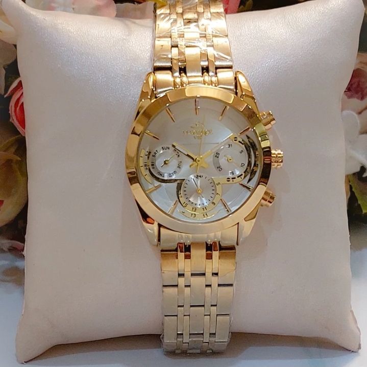بنداستیل طلایی صفحه سفیدطرح سه موتورهاستتقویمداردقطر شیشهساعت مردانه: 38 میلیمتر ⌚ساعت زنانه: 28 میلیمترجعبه کادوییدارد