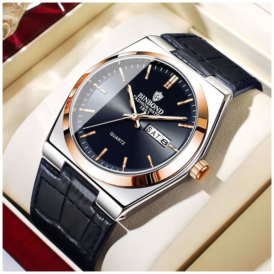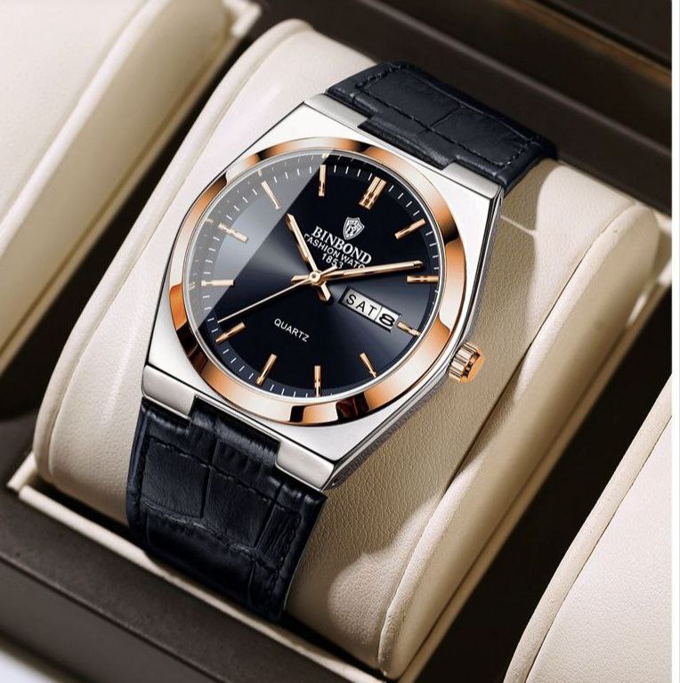 ساعت مردانه بند چرم با نمایشگر ایام ماه و هفته