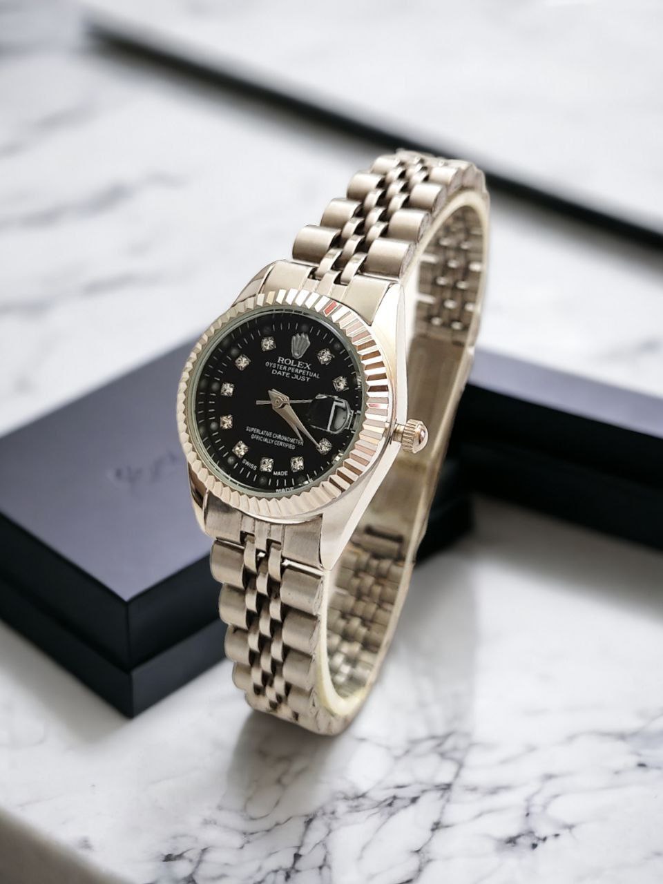 اطلاعات محصول :دارای تقویم روزشمار شیشه تلسکوپی تقویم قاب و بند تمام استیل ثبات رنگ بالا و ضد حساسیت قفل کلیپسی استیل با حک آرم رولکسجعبهدارد