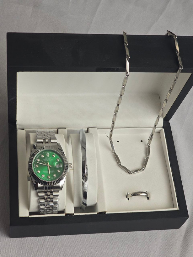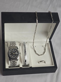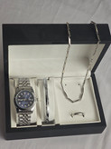 ست مردانه ساعت و دستبند و گردنبند استیل و حلقه( سایز ۶ تا ۱۰)
