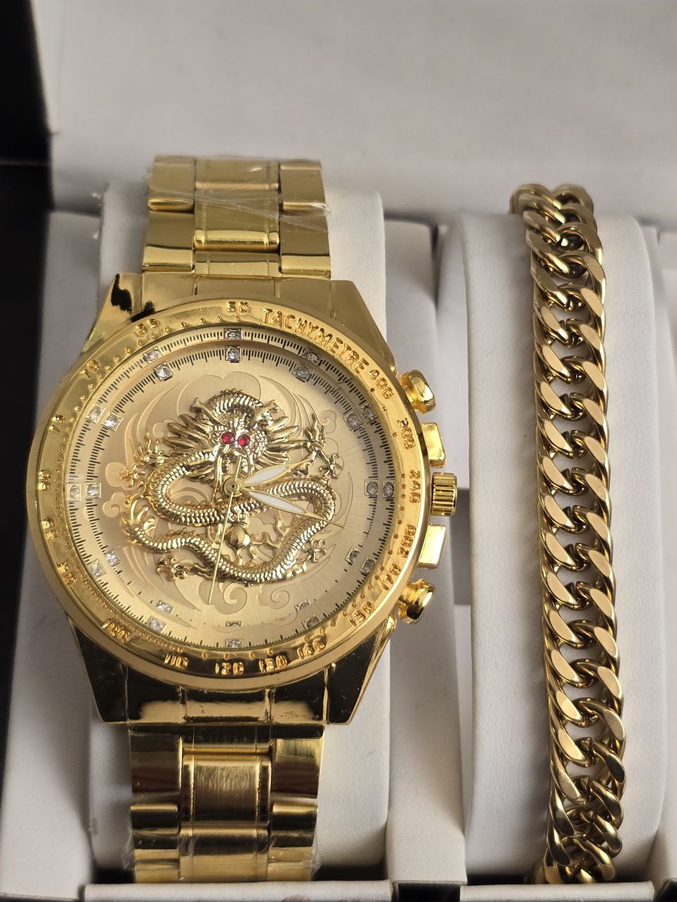 ست مردانه ساعت و دستبند و گردنبند استیل و حلقه( سایز ۶ تا ۱۰)