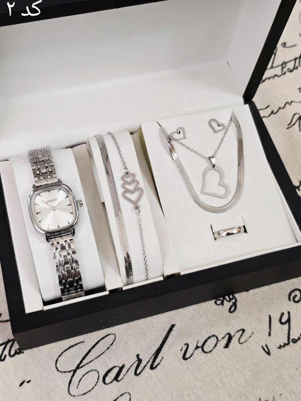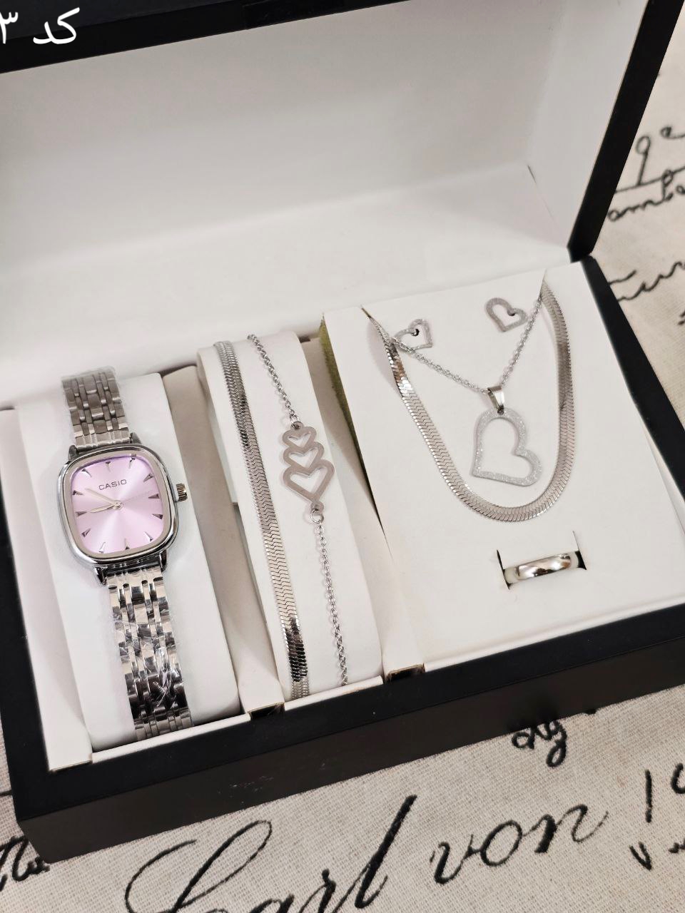 ست زنانه و دخترانه ساعت و دستبند و نیمست استیل  و حلقه