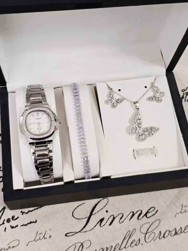 ست زنانه و دخترانه ساعت و نیمست پروانه و انگشتر نگینی