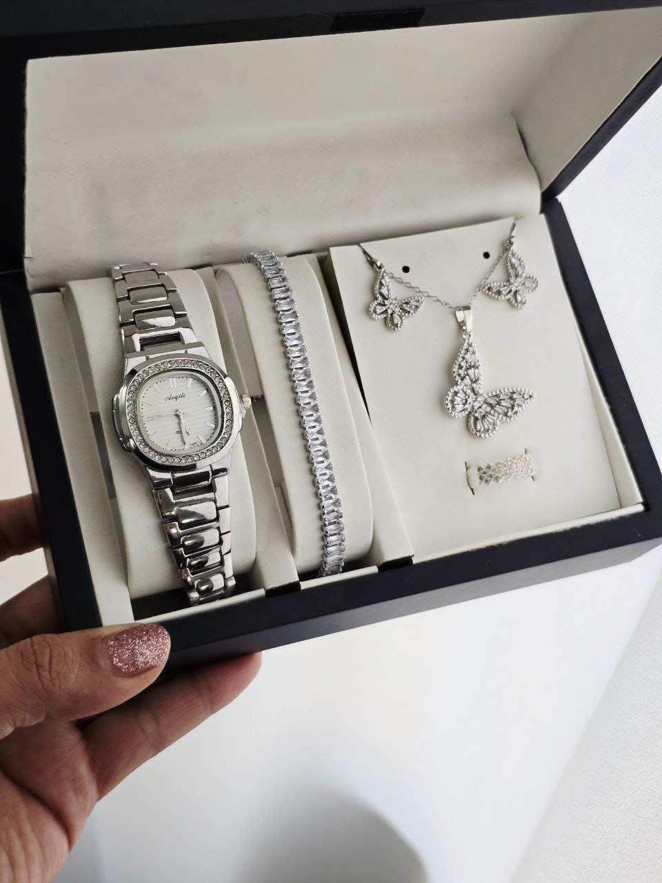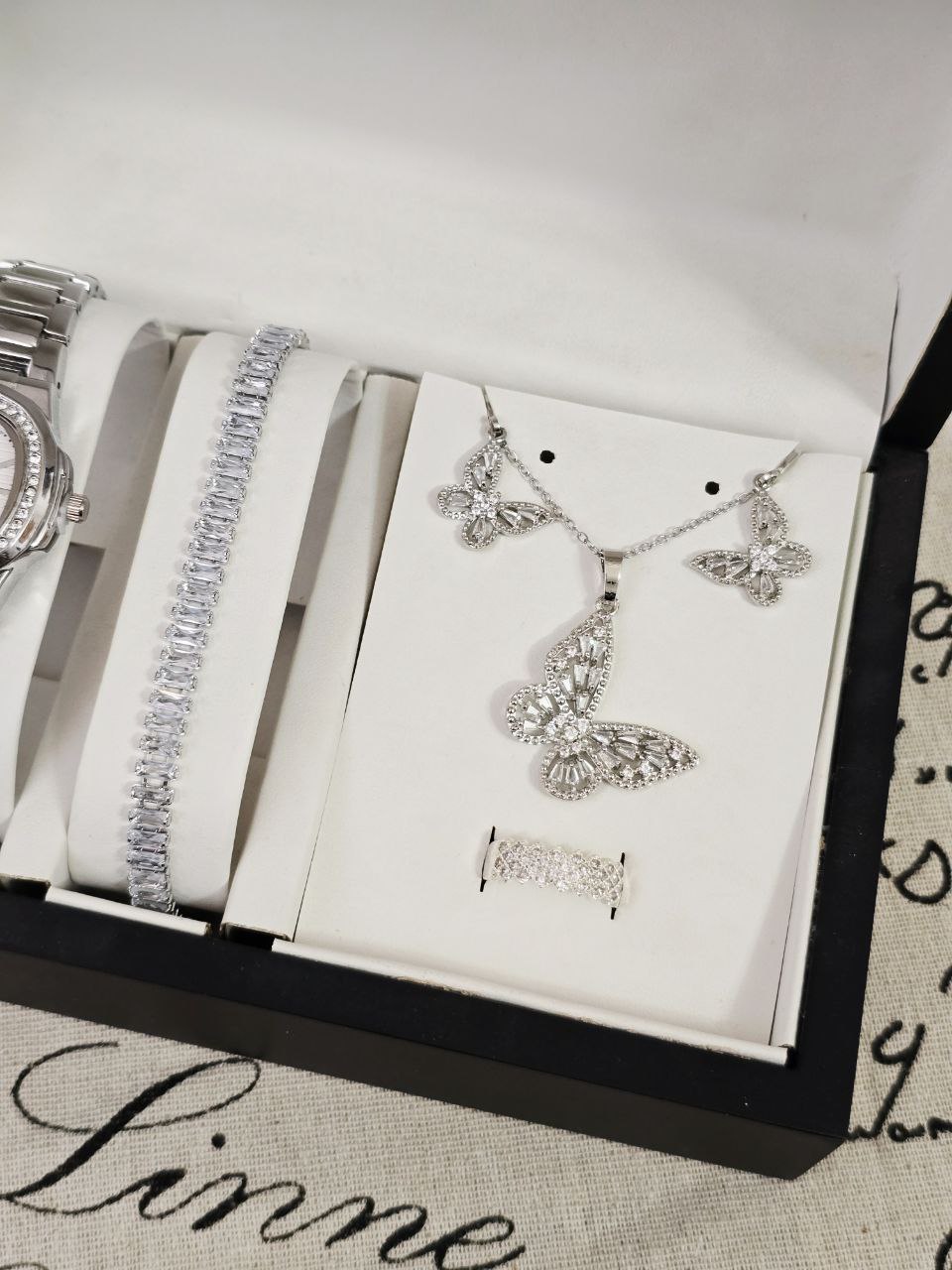 ست زنانه و دخترانه ساعت و نیمست پروانه و انگشتر نگینی