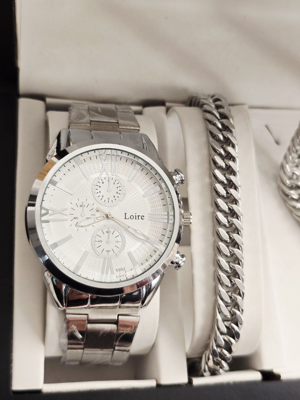 ست مردانه ساعت و دستبند و گردنبند زنجیر استیل و حلقه استیل( سایز ۶ تا ۱۰)