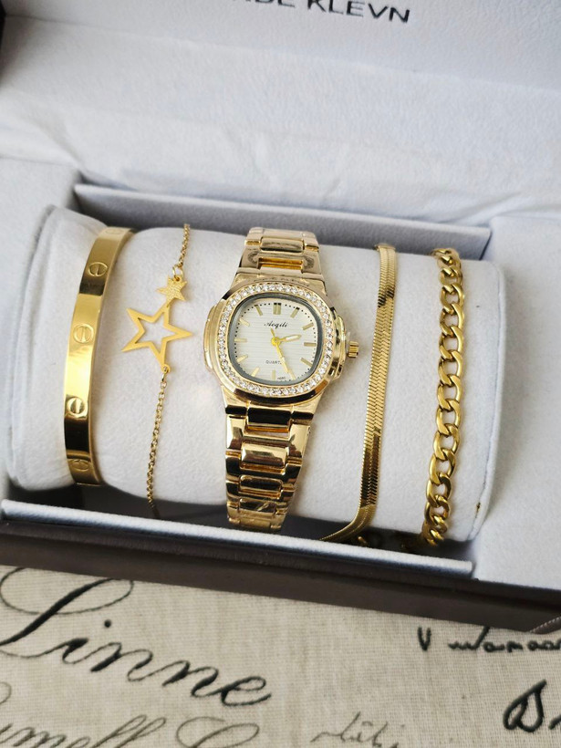 ست زنانه و دخترانه ساعت و زیورآلات استیل رنگ ثابت