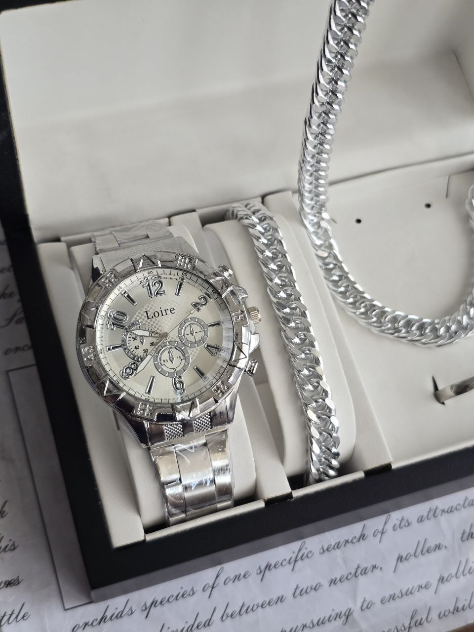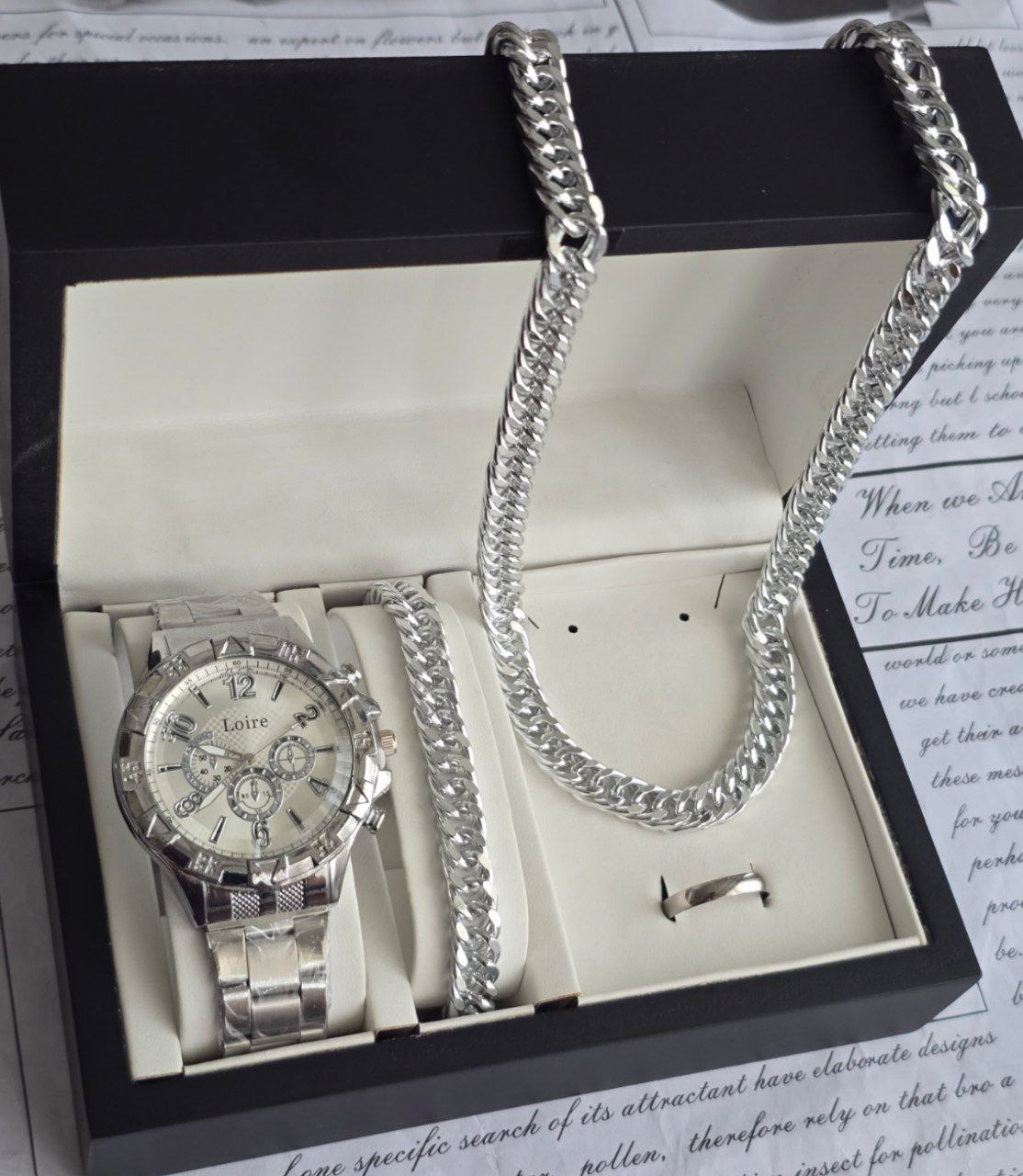 ست ساعت بهمراه دستبند و گردنبند آلومینیومی و حلقه استیل