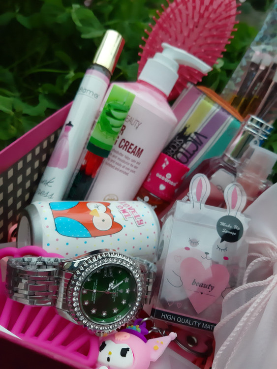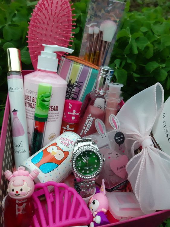 اطلاعات محصول :: ☄برس مو ☄براش ۳ عددی ☄دستمال مرطوب قوطی ☄کرم ابرسان دست و صورت ☄ادکلن وردی ☄عطر ☄تینت لب آلوئه ورا ☄پد تخم مرغی ☄گل سر پاپیونی ☄رژ لب جامد ☄تینت لب ☄حجم دهنده لب آمپولی ☄جا کارتی ☄جا سوییچی ☄کلیپس ☄تراش دو قلو 🌈ساعت رولکس صفحه سبز زنانه