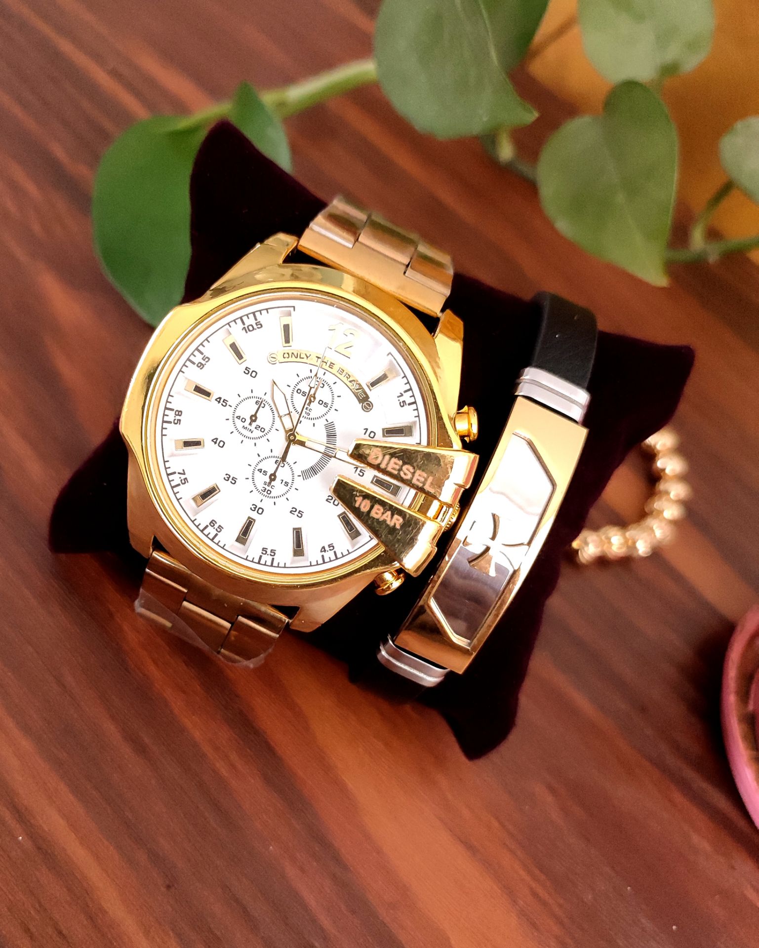 ست زنانه و مردانه بند طلایی صفحه سفید 369571