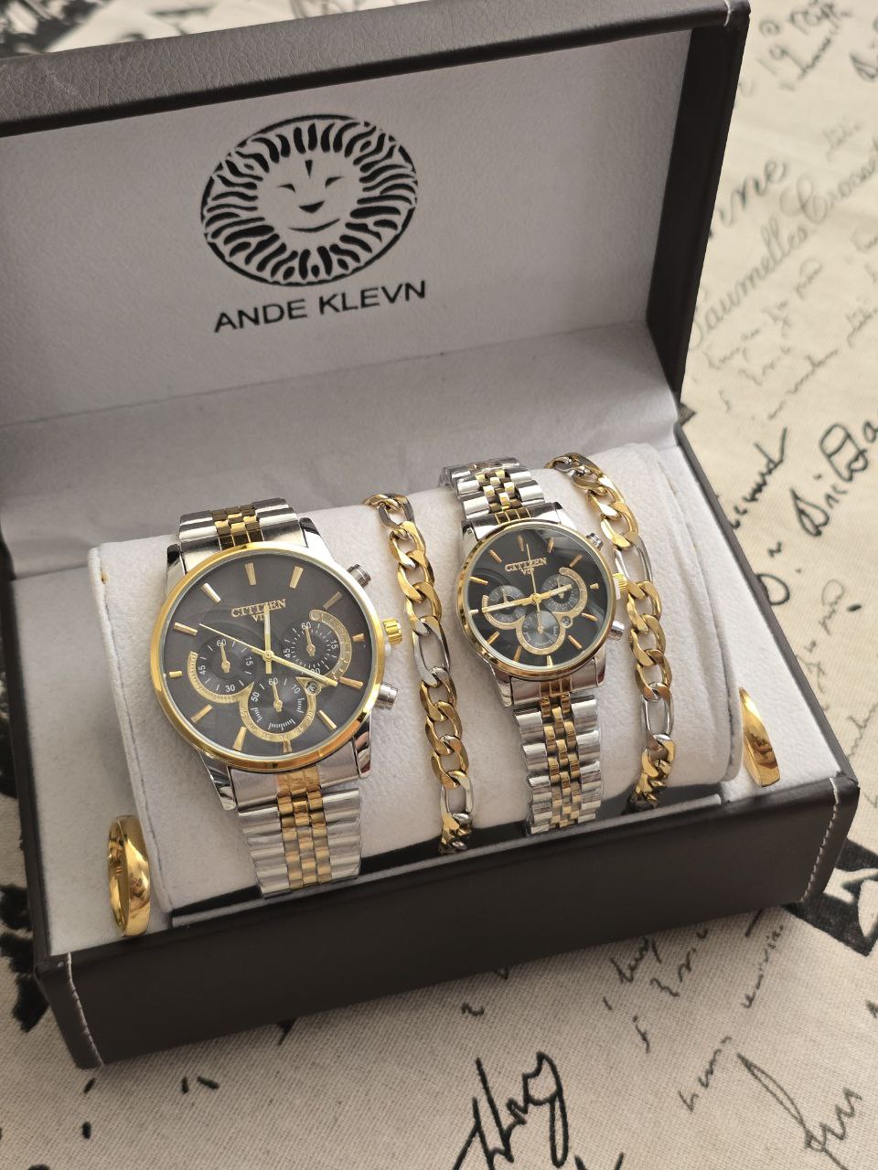 ست ساعت زنانه و مردانه سیتیزن بهمراه دو عدد دستبند کارتیر استیل و حلقه (سایز 6 تا 10)