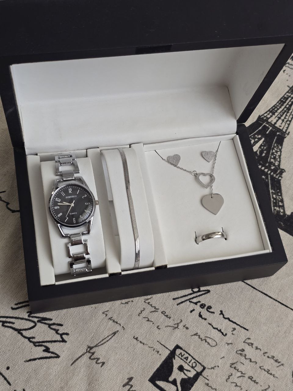 ست زنانه و دخترانه ساعت و دستبند و نیمست استیل و انگشتر جواهری