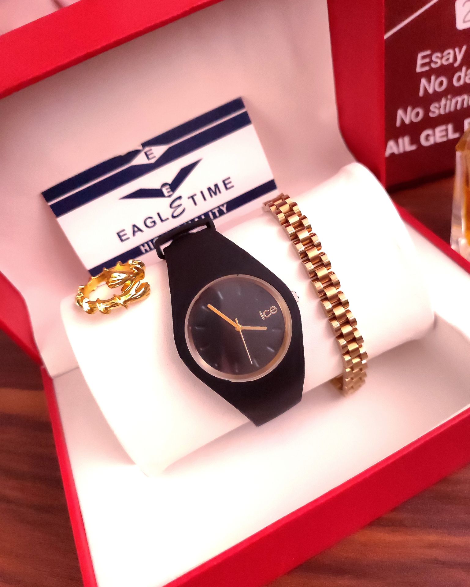 ست زنانه و دخترانه ساعت نگینی بهمراه دو عدد دستبند نگین تنیسی و ونکلیف
