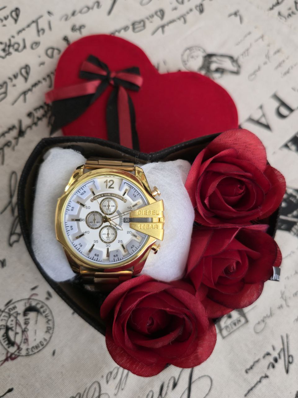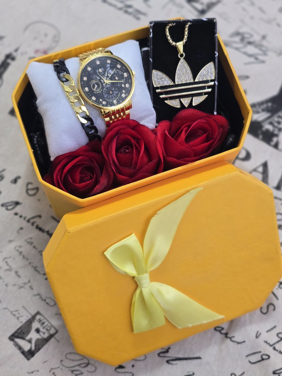پک مردانه ساعت و دستبند و گردنبند بهمراه باکس و گل مصنوعی